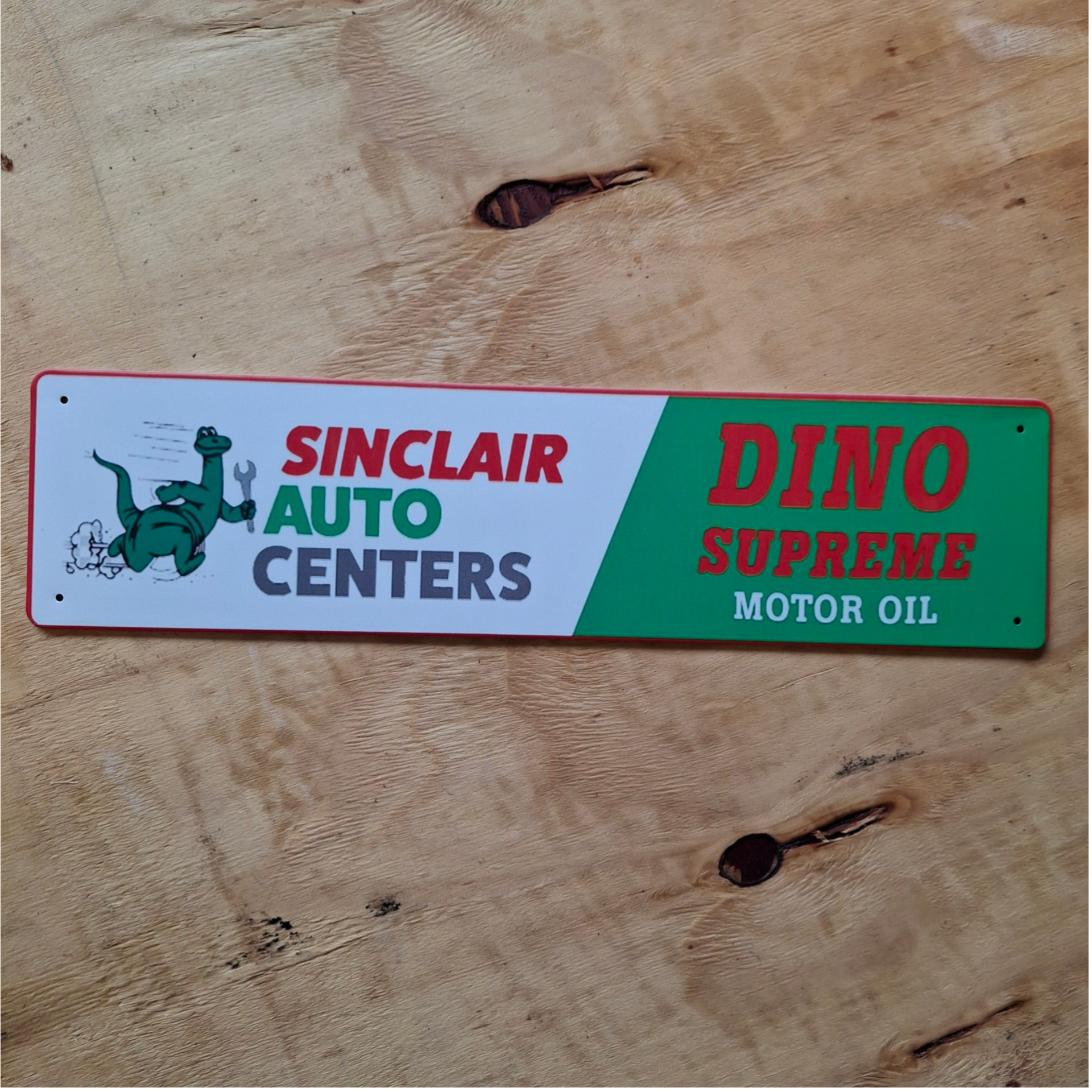 Metalen wandplaat van Sinclair. Afmeting is ongeveer 40 cm x 10 cm. Voorzien van 4 gaatjes om hem op te hangen.