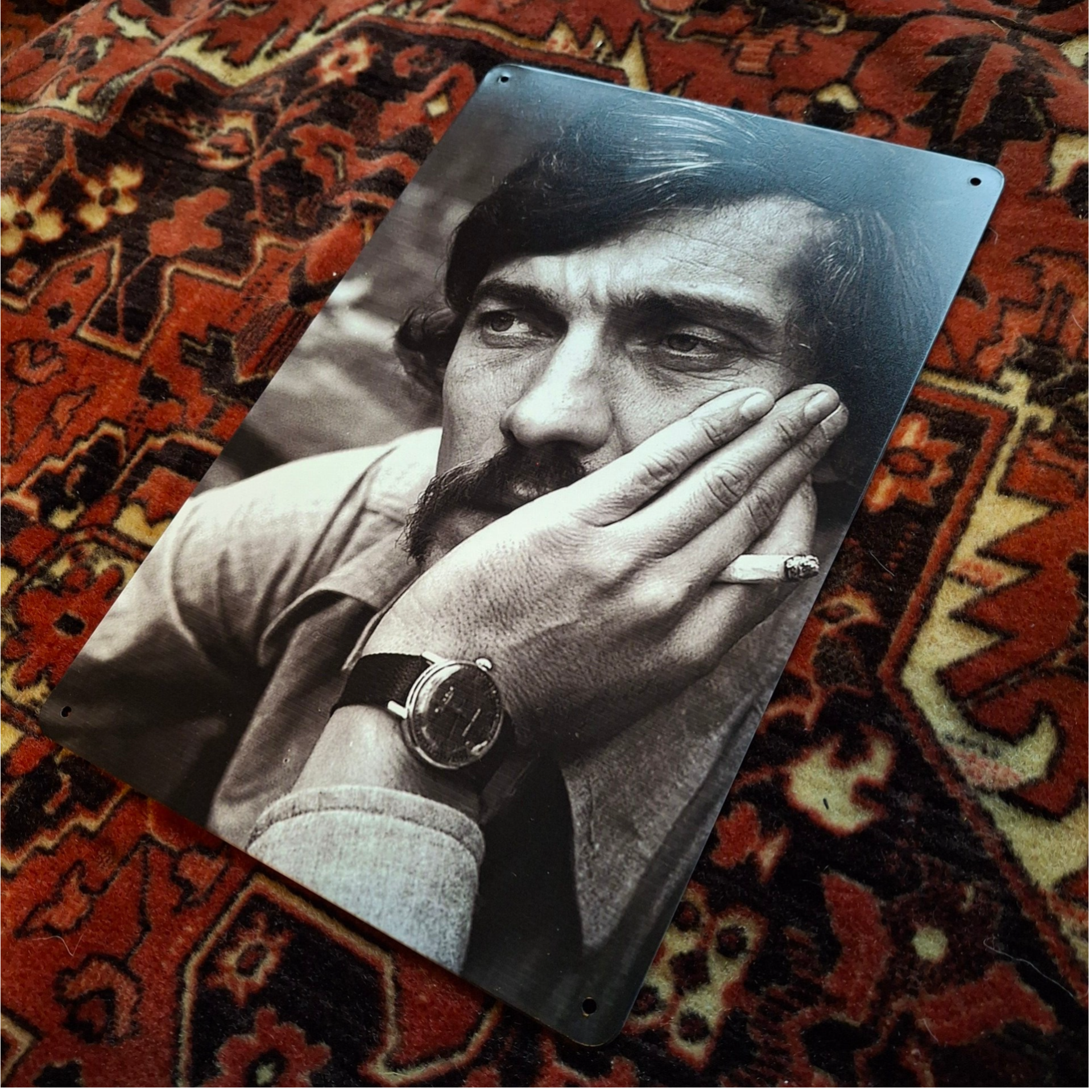 Metalen wandplaat van de beroemde Groningse zanger Ede Staal. Afmeting is ongeveer 20 cm x 30 cm. Voorzien van 4 gaatjes om hem op te hangen.